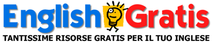 • Il nome del sito EnglishGratis è esclusivamente un marchio e un nome di dominio internet che fa riferimento alla disponibilità sul sito di un numero molto elevato di risorse gratuite e non implica dunque alcuna promessa di gratuità relativamente a prodotti e servizi nostri o di terze parti pubblicizzati a mezzo banner e link, o contrassegnati chiaramente come prodotti a pagamento (anche ma non solo con la menzione "Annuncio pubblicitario"), o comunque menzionati nelle pagine del sito ma non disponibili sulle pagine pubbliche, non protette da password, del sito stesso.