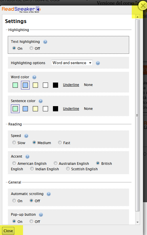 ReadSpeaker consente di regolare diverse funzioni in accordo